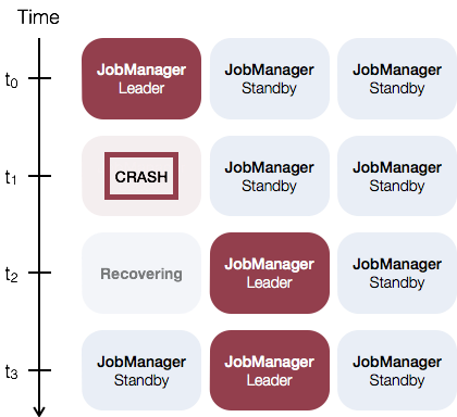The general idea of JobManager High Availability is that there is a single leading JobManager at any time and multiple standby JobManagers to take over leadership in case the leader fails. This guarantees that there is no single point of failure and programs can make progress as soon as a standby JobManager has taken leadership.